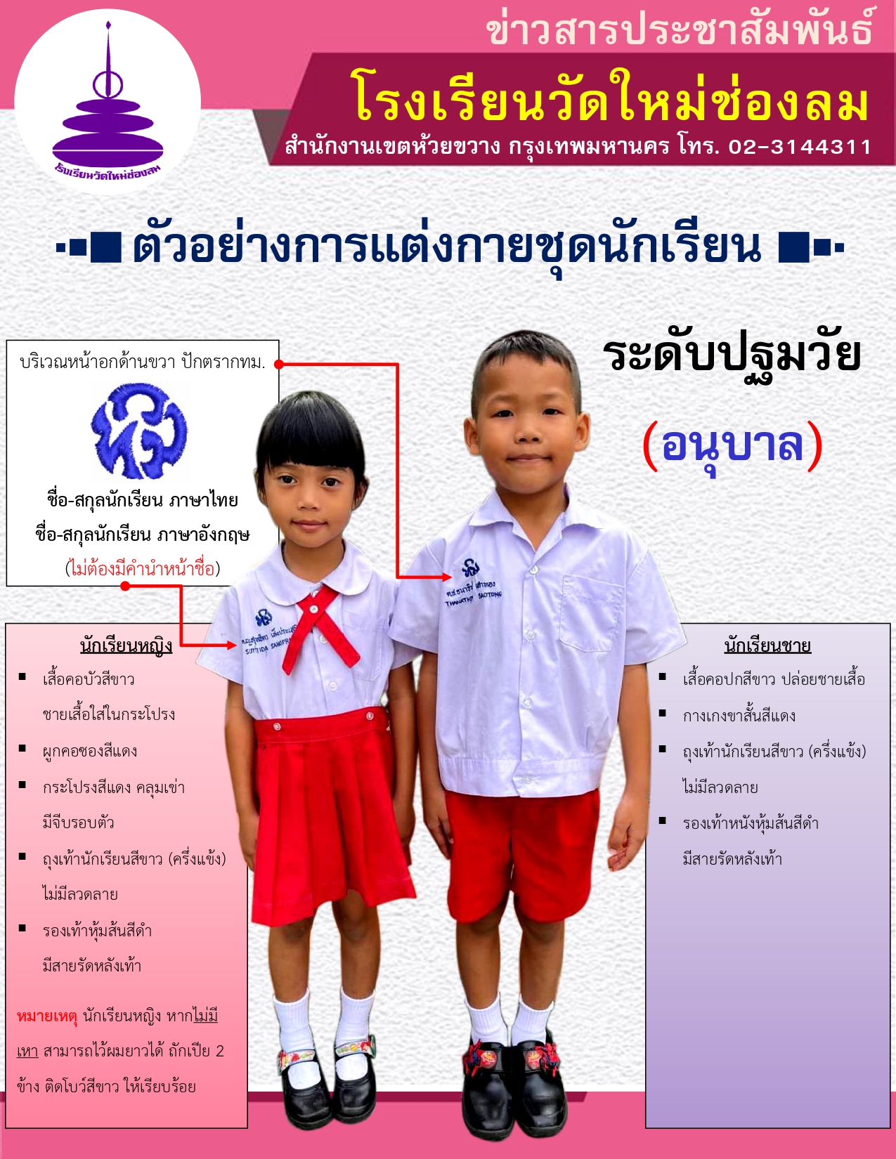 ข่าวสารประชาสัมพันธ์ ชุดเครื่องแบบนักเรียนโรงเรียนวัดใหม่ช่องลม ระดับปฐมวัย (อนุบาล)