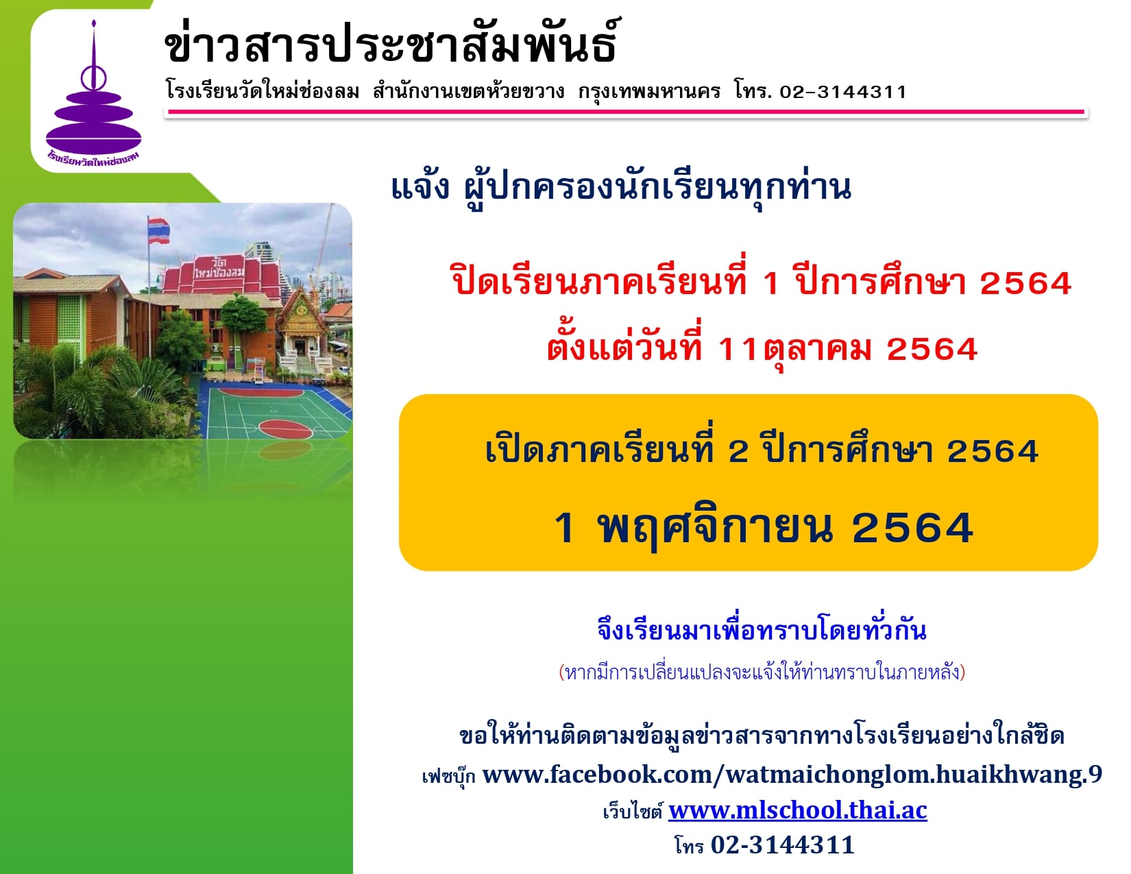 กำหนดการเปิดปิดภาคเรียนที่1ปีการศึกษา 2564