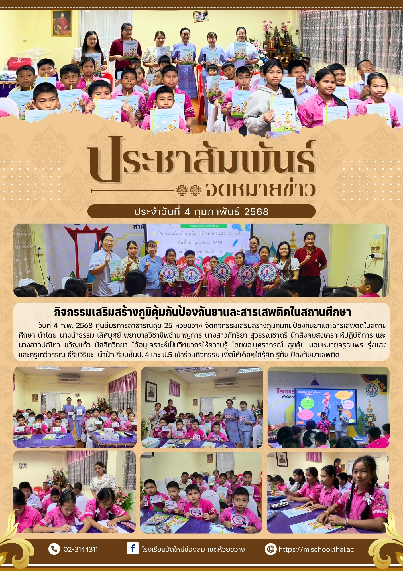 กิจกรรมเสริมสร้างภูมิคุ้มกันป้องกันยาและสารเสพติดในสถานศึกษา
