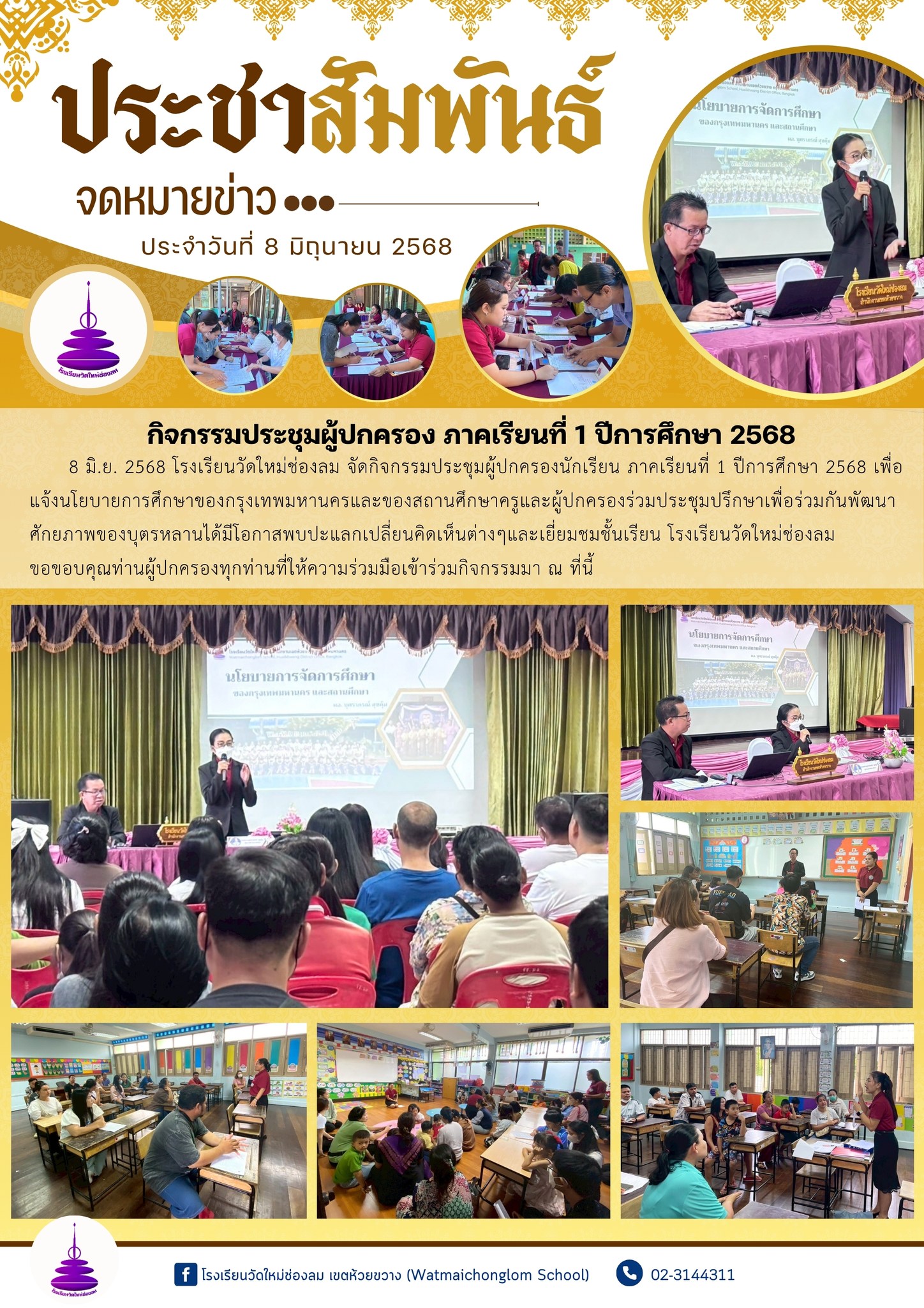 กิจกรรมประชุมผู้ปกครอง ภาคเรียนที่ 1 ปีการศึกษา 2568