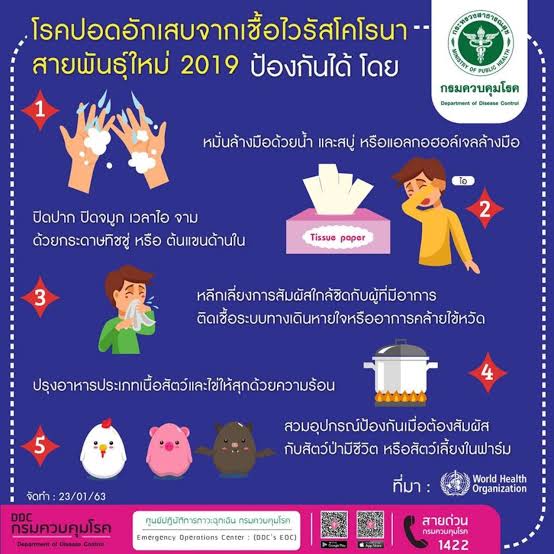 ล่าสุด "กองระบาดวิทยา กรมควบคุมโรค กระทรวงสาธารณสุข" ได้เผยแพร่วิธีป้องกันการติดเชื้อไวรัสโคโรน่า ดังนี้